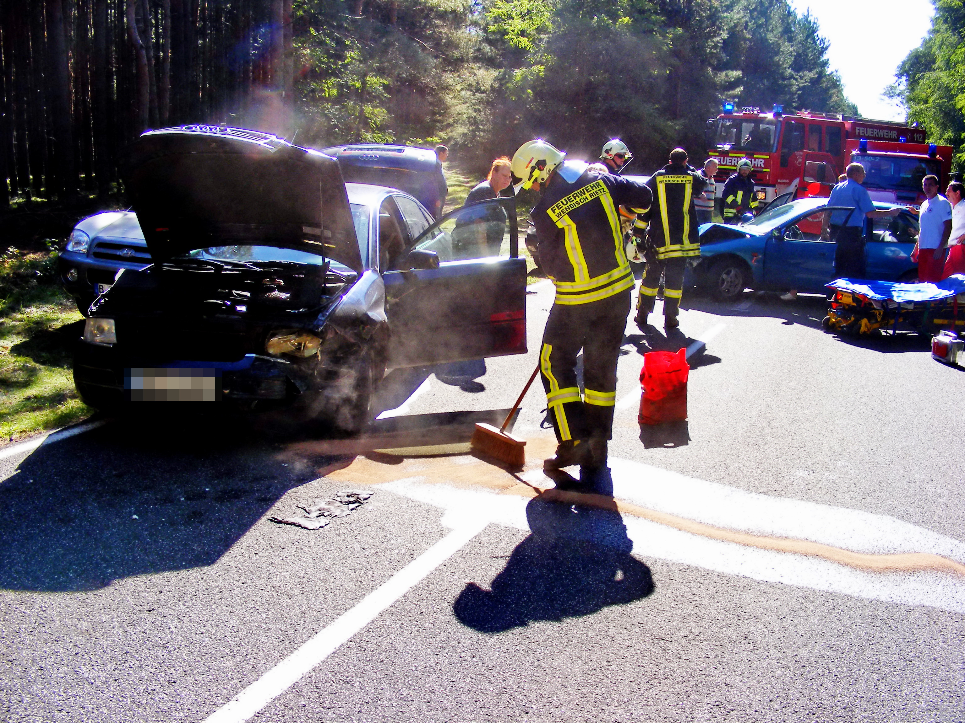 2 PKW mit Frontalzusammenstoß, 1 verletzte Person